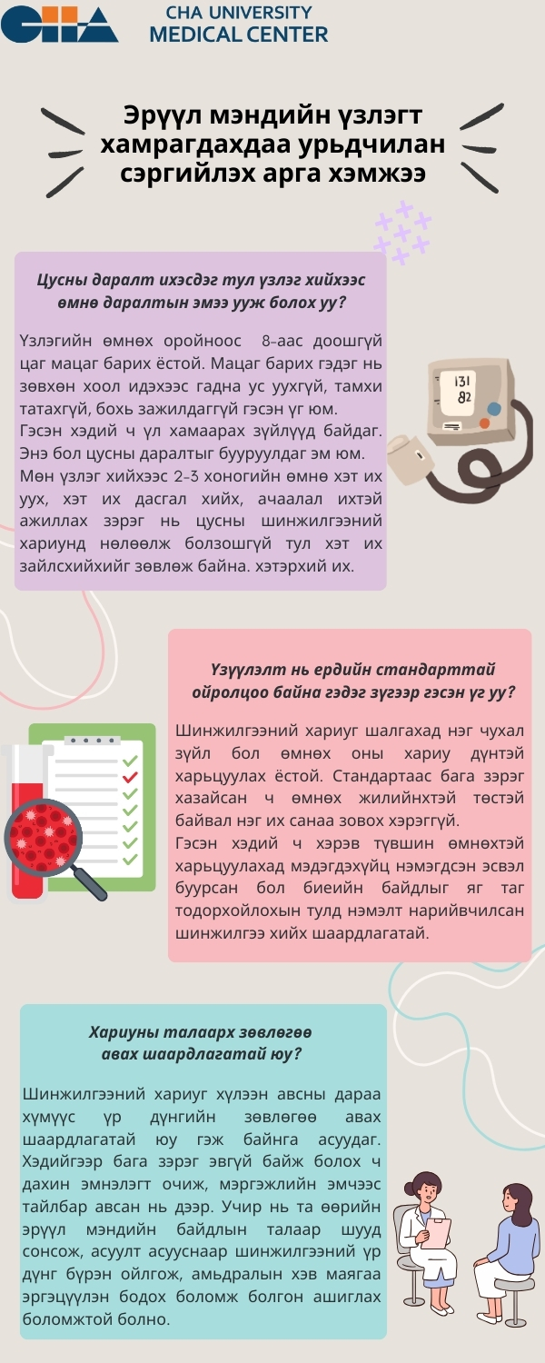 Эрүүл мэндийн үзлэгт орохдоо байнга асуудаг түгээмэл асуултуудын талаарх мэдээллийг та бүхэнд хүргэж байна.
